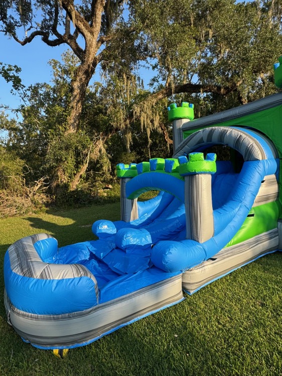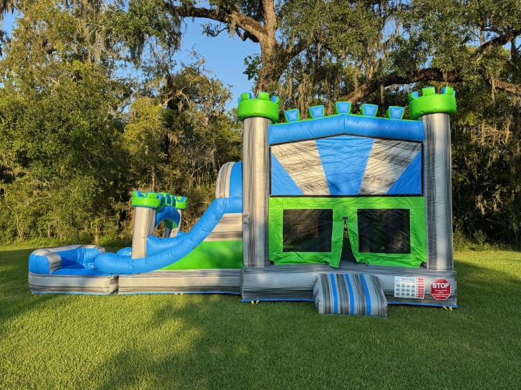 The Royal Kingdom Combo is a castle-themed play setup that combines a spacious bounce area with an attached slide in one rental. Bright royal colors and turret details turn any yard or event space into a mini kingdom for kids—perfect for birthdays, school events, and neighborhood parties. Can be used wet or dry!