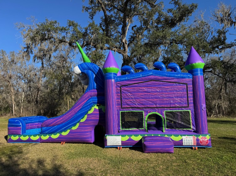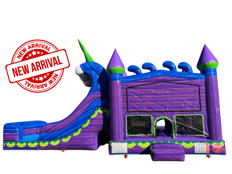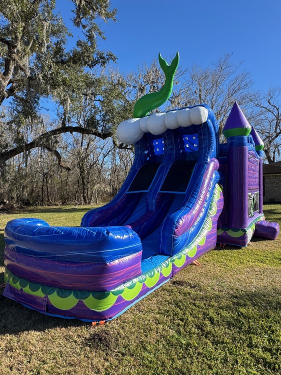Dive into a magical underwater adventure with the Mermaid Land bounce house featuring a dual-lane slide. This colorful inflatable combines a roomy, safe bouncing area with two side-by-side slides so two kids can race, slide, and splash into fun together. Bright mermaid and ocean-themed graphics set a whimsical scene ideal for birthday parties, family gatherings, or school events. Built for easy setup and supervised play, it offers hours of active entertainment while keeping young guests engaged and excited. Perfect for parties that want a touch of fantasy plus double the sliding fun. Can be used wet or dry!