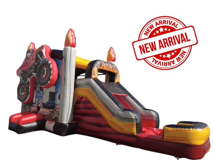 Bold, exciting, and built for big fun, the Monster Truck bounce house with slide combines a roomy bouncing area with an attached slide for nonstop action. Kids can jump, tumble, and race up the interior ladder to whoosh down the slide, all inside a colorful, monster-truck-themed inflatable that sparks imagination and adds high-energy flair to birthday parties, school events, or backyard gatherings. Designed for safety and easy supervision, it keeps active play contained while providing multiple ways to play in one rental — bounce, climb, and slide — so children stay engaged longer and parents get a more memorable event with less setup. Perfect for fans of vehicles, loud roars, and rambunctious play.